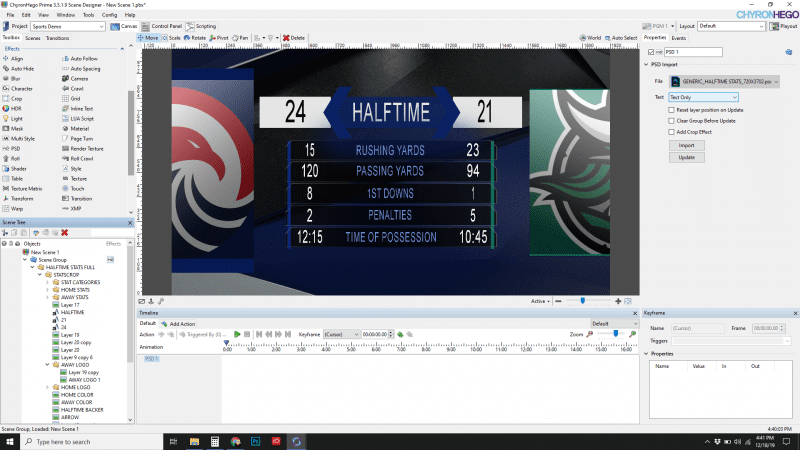 Advanced Keyboard Support: PRIME Graphics users now can take advantage of quick recalls for scene authoring, as well as easy manual playout — a particularly valuable capability in live sports and entertainment environments. With deep-end integration of scene parameters, graphics, and other assets triggering, operators can apply changes rapidly at the scene level using flexible keys.